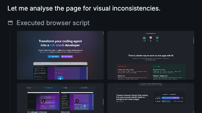 Your agent works across your stack, from UI to the database, and you see every change as it happens. No more translating between what you're looking at and what your agent knows.
