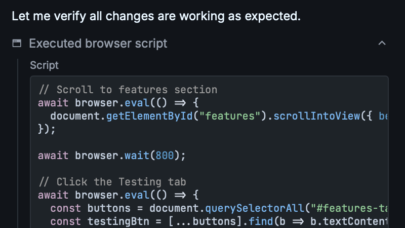 Tests methods, checks values, explores APIs. Like having a REPL for agents.